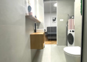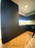 Kamenár&Partners si Vám dovoľuje touto cestou predstaviť tento jedinečný 2 izbový byt, ktorý sa nachádza v historickom centre Trnavy a to konkrétne v Rezidencii pri synagóge na Halenárskej ulici. Byt bol pred 2 rokmi čerstvo dokončený a skolaudovaný a bol navrhnutý interiérovou dizajnérkou. Jeho podlahová plocha je síce len 35m2, ale napriek tomu ponúka zaujímavý priestor, ktorý tvorí obývačka prepojená s kuchyňou a jedáleň. Spálňa je samostatná miestnosť. V byte je podlahové kúrenie a tiež je byt vabevený klimatizáciou. Byt sa predáva s kompletným vybavením a zariadením, ktoré má len 2 roky. O takýto typ bytu nebude núdza na prenajímanie prostredníctvom bookinu, alebo AirBnB. Jeho mesačné náklady sú pod hranicou 80,- Euro.