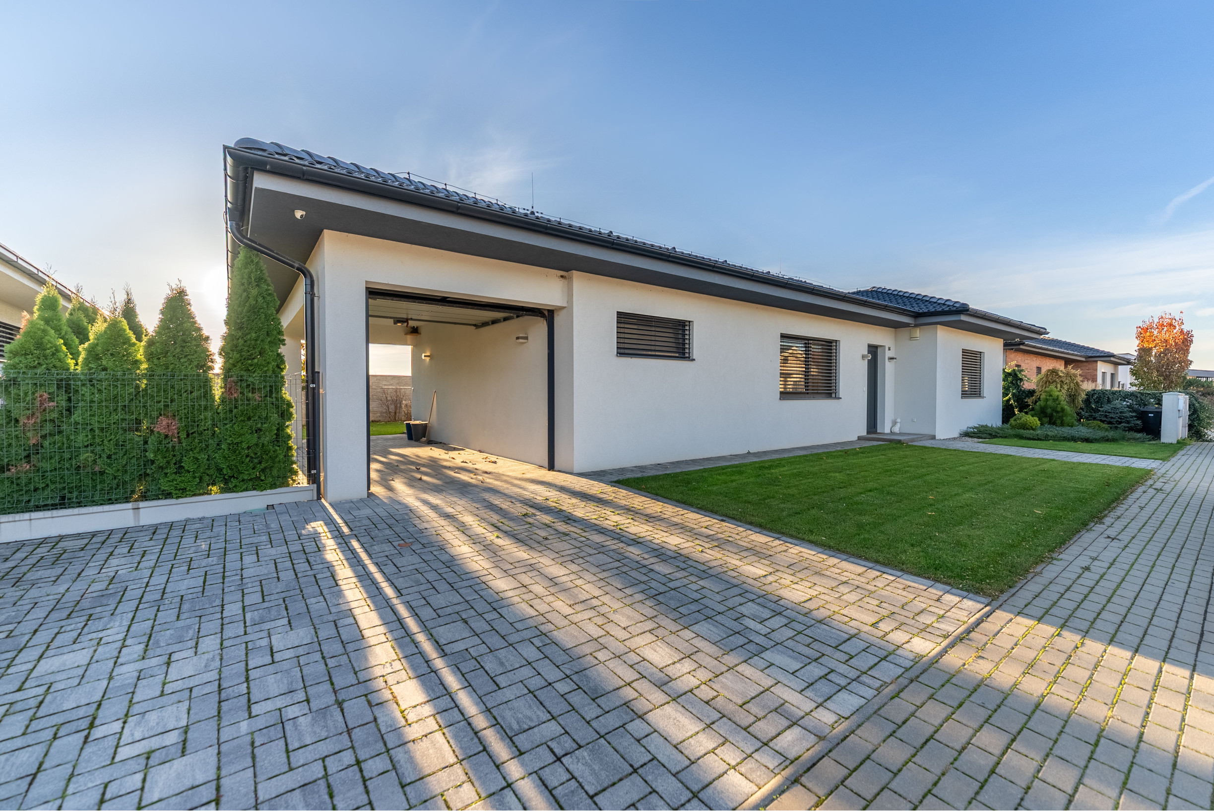 Kamenár&Partners Vám dáva exkluzívne do pozornosti predaj tohto úžasného rodinného domu typu bungalov, ktorý sa nachádza v novovybudovanej časti Zelenča. Náš dom je postavený na pravideľnom pozemku o veľkosti 478m2, pričom jeho osadenie na pozemku zabezpečí presvetlenosť po celý deň. So zastavanou plochou 190 m2 a plochou interiéru,ktorá je cca 130m2 treba jednoznačne povedať, že práve tento dom ponúkne dostatok priestoru na život aj pre viacčlennú rodinu. Skutočne priestranná obývačka moderne prepojená s jedálňou a kuchyňou tvoria jeho dennú časť, zvyšok domu tvoria 3 pomerne veľké spálne, samostatná toaleta a kúpelňa, v ktorej sa nachádza vaňa, ako aj sprchový kút. Technická miestnosť, kde sa nachádza kotol a náraďovňa má vstup z vonka. Dom má prístrešok na auto, ktorý je schovaný za garážovou bránou, s možnosťou uzavretia stien. Nehnuteľnosť je napojená na všetky inžinierske siete. Vek domu je 5 rokov, pričom bol obývaný veľmi krátke obdobie, aktuálne sú čerstvo vymenené podlahy s intriérovými dverami. Vybavený je klimatizáciou, vonkajšími hliníkovými žalúziami. Záhrada domu je okrasná a bezúdržbová. Za domom je pole, ktoré je obľúbeným oddychovým miestom na prechádzku nielen pre miestych obyvateľov. Samotná obec ponúka jej obyvateľom výbornú občiansku vybavenosť a lokalita ponúka kvalitné komunitné bývanie. Dom sa predáva zariadený a kúpou je okamžite voľný k nasťahovaniu.