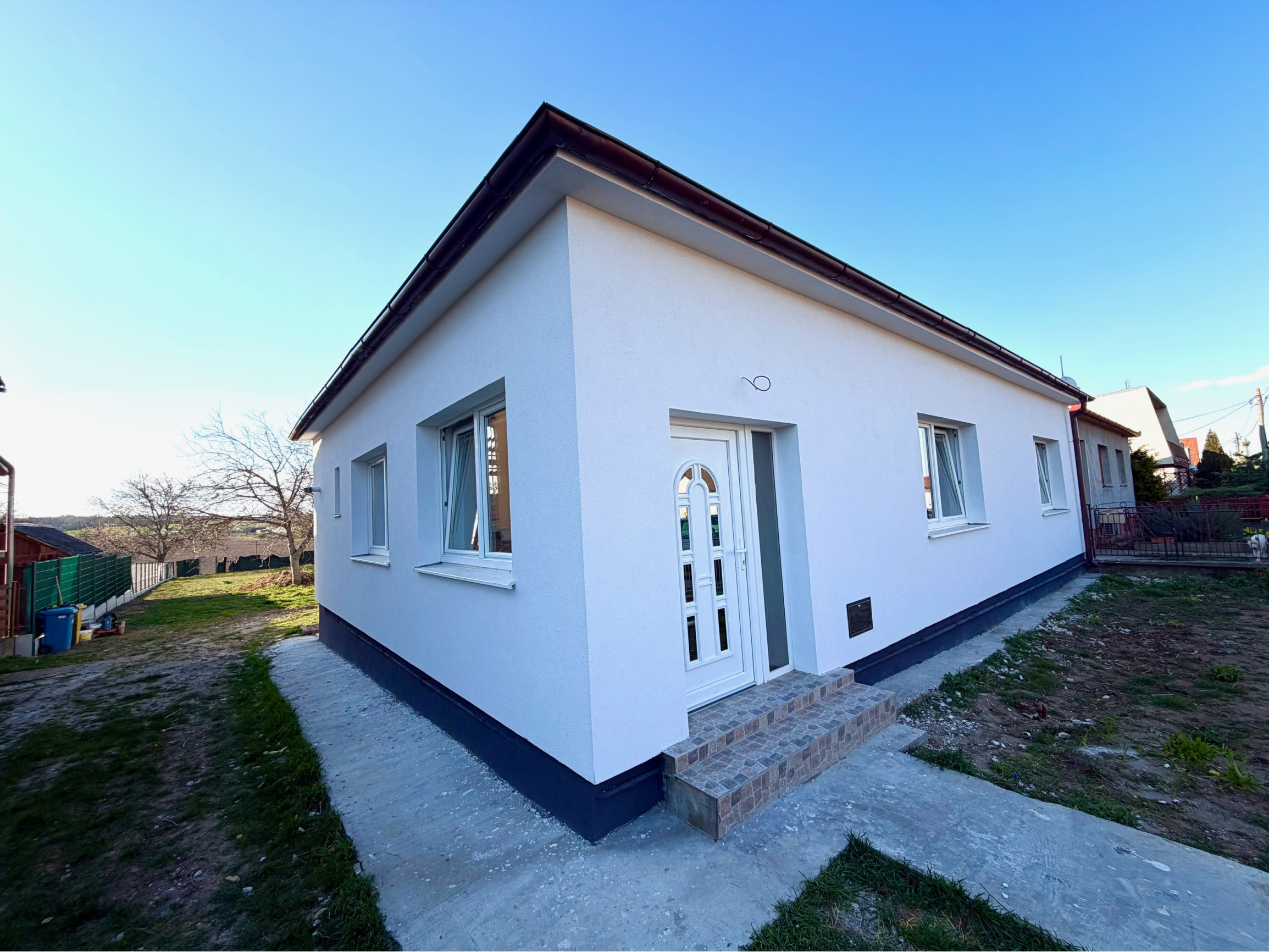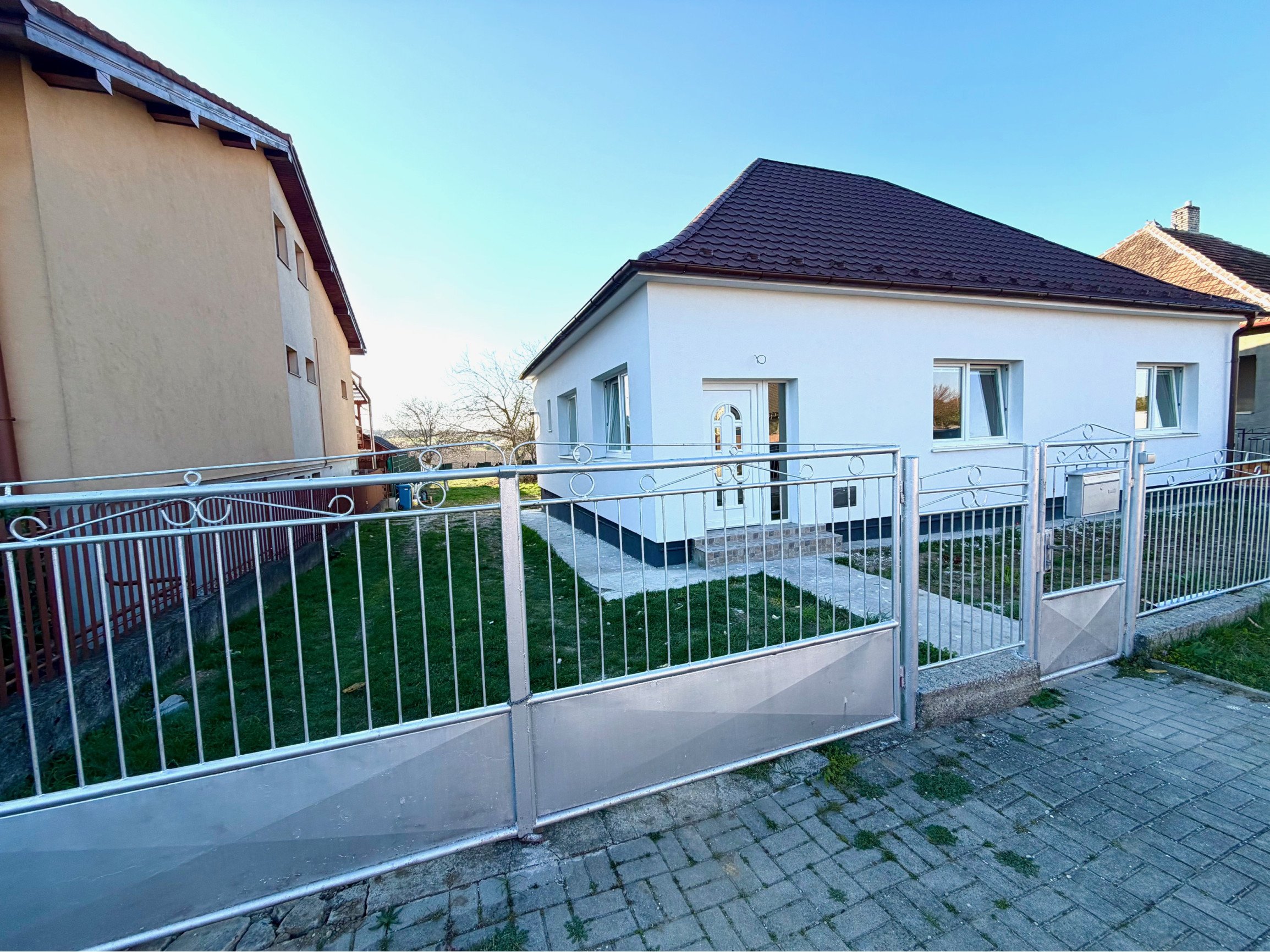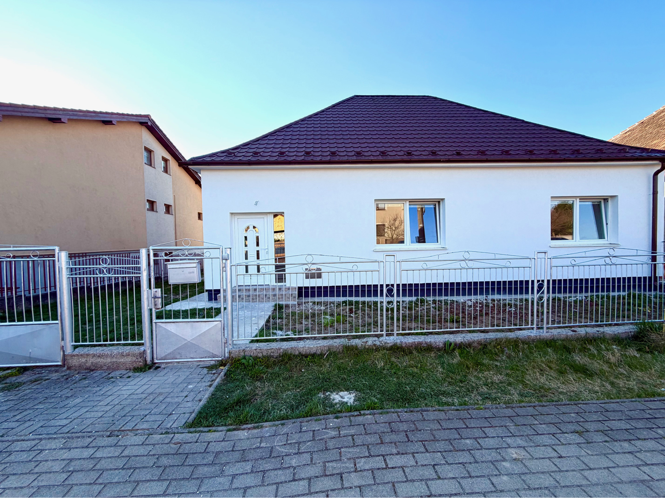 Kamenár&Partners Vám predstavuje na predaj tento čerstvo moderne a kavlitne zrekonštruovaný prízemný rodinný dom, ktorý sa nachádza v obci Rišňovce v tichej uličke. Náš dom je postavený na pravideľnom rovinatom pozemku o velkosti krásnych 1431m2. Jeho zastavaná plocha je 130m2 pričom obytnú plochu tvorí 104m2 plus plocha pivnice cca 40m2 a plocha vonkajšej terasy 20m2. Dispozíciu domu tvoria 3 pomerne veľké a priestranné izby, z čoho 2 sú situované do ulice a moderné prepjenie obývacej izby a kuchyne je orientované do záhrady na ktorú je vstup priamo cez terasu domu. Samostatné WC a odelená kúpelňa a technická miestnosť s plynovým kotolm sa nachádzajú na chodbe. Dom ako taký bol postavený cca v 70.rokoch a jedná sa o stavbu postavenú z tzv.blokov. Jeho kompletná rekonštrukcia, vrámci ktorej bol na komplet zrekonštruovaný interiér, ako aj exteriér domu bola práve dokončená. Nehnuteľnosť je napojená na obecný vodovod, kanalizáciu, plyn a elektrinu. Má oplotený a udržiavaný pozemok, na Liste vlastníctva je nehnuteľnosť nezaťažená a kúpou okamžite voľná k nasťahovaniu. Obec Rišňovce disponuje kvalitnou občianskou vybavenosťou a ponúka dobrú dostupnosť do Nitry ako aj do Hlohovca.
