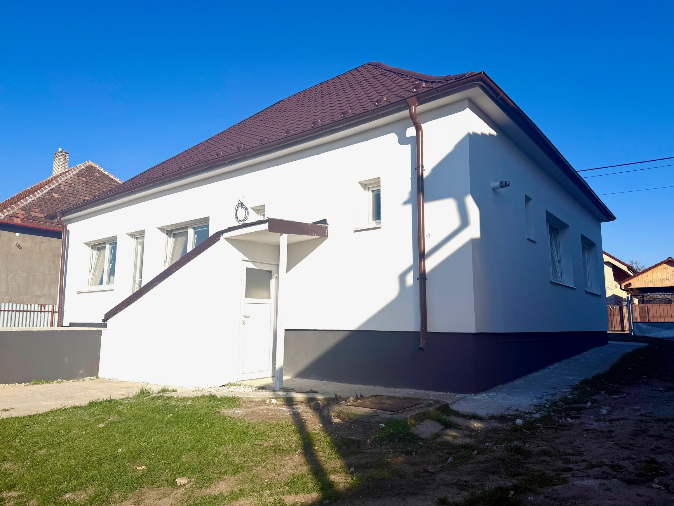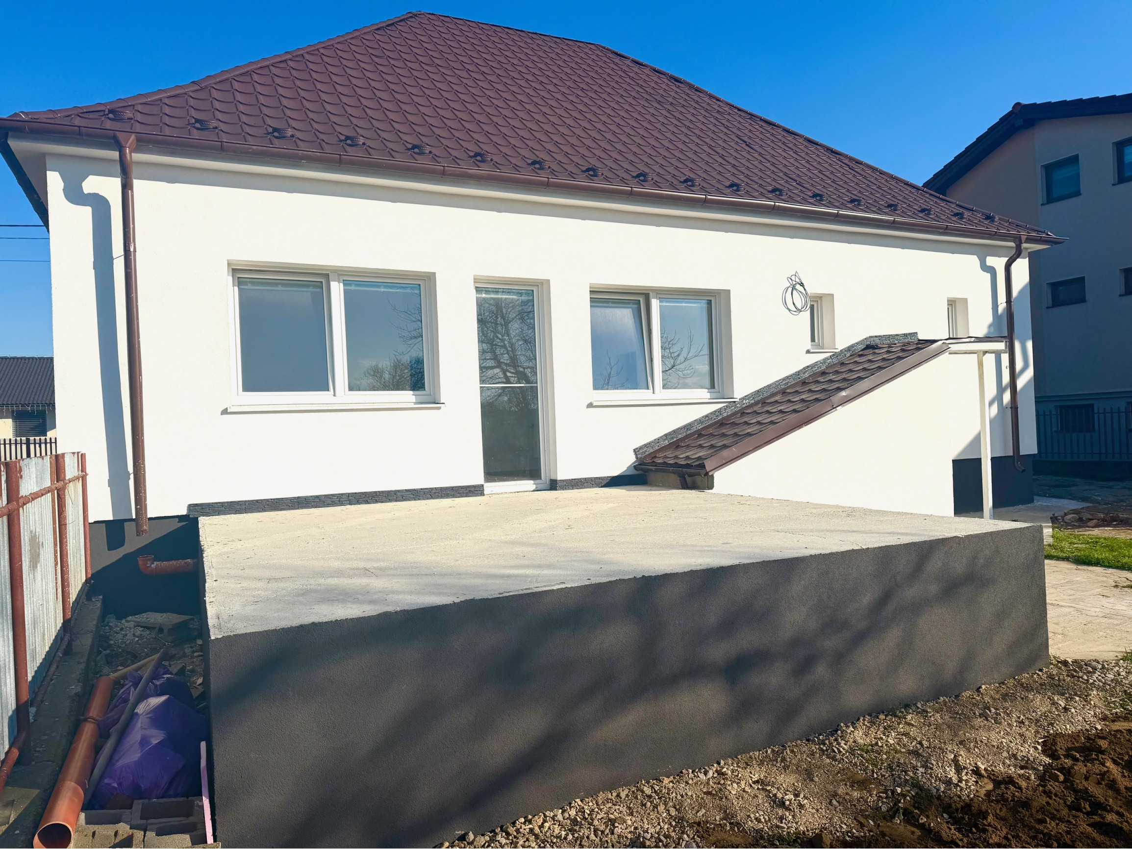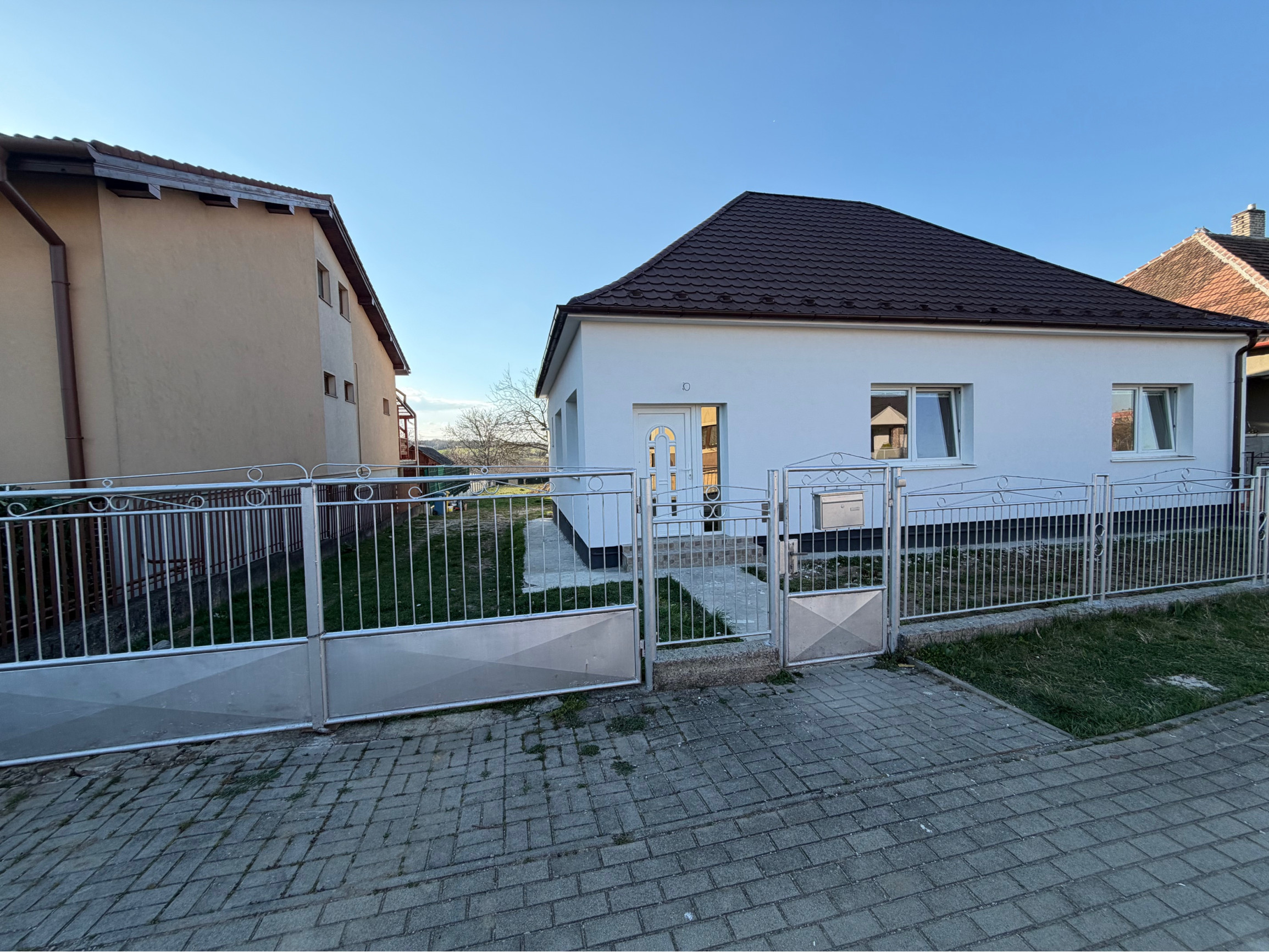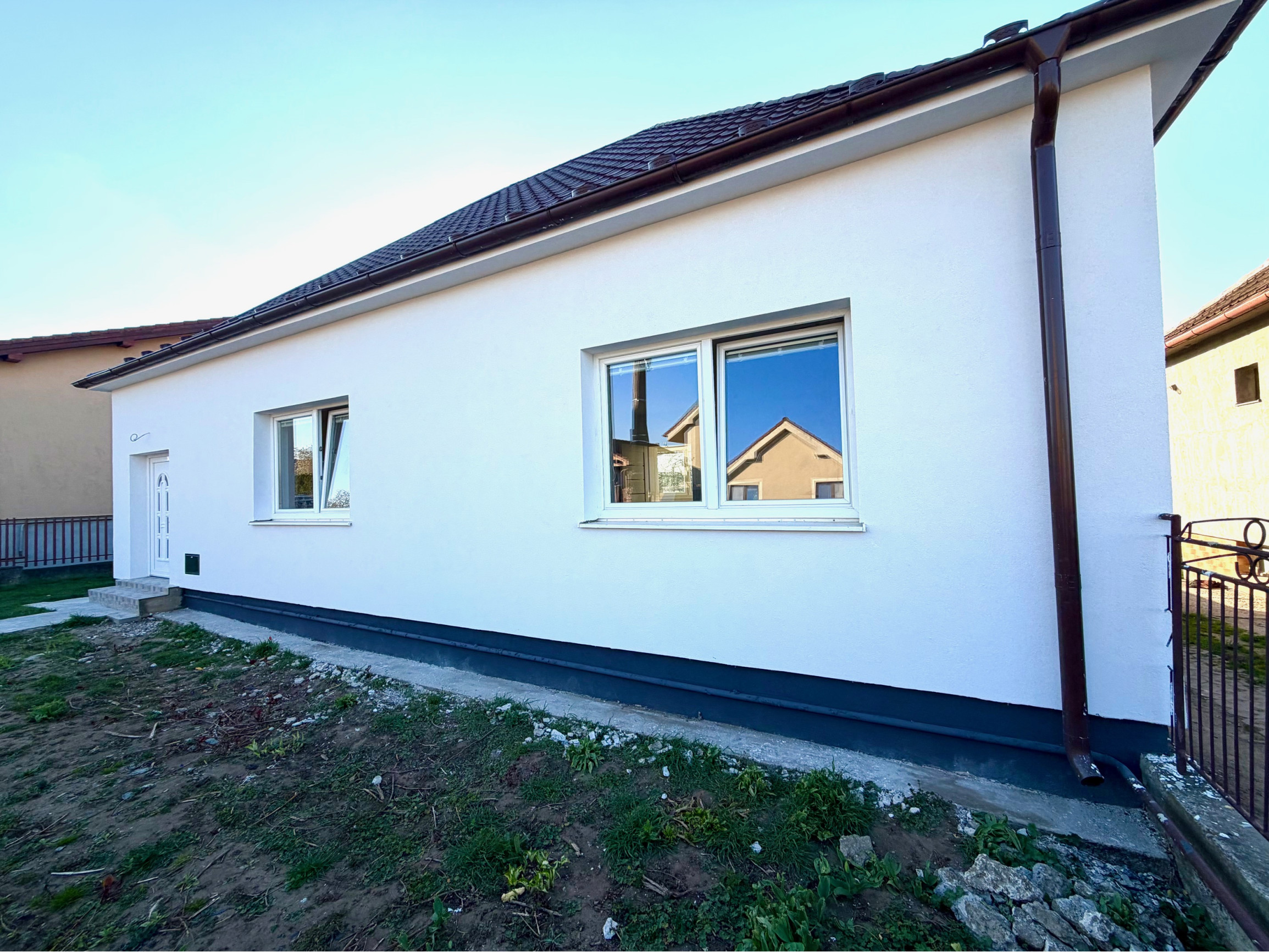Kamenár&Partners Vám predstavuje na predaj tento čerstvo moderne a kavlitne zrekonštruovaný prízemný rodinný dom, ktorý sa nachádza v obci Rišňovce v tichej uličke. Náš dom je postavený na pravideľnom rovinatom pozemku o velkosti krásnych 1431m2. Jeho zastavaná plocha je 130m2 pričom obytnú plochu tvorí 104m2 plus plocha pivnice cca 40m2 a plocha vonkajšej terasy 20m2. Dispozíciu domu tvoria 3 pomerne veľké a priestranné izby, z čoho 2 sú situované do ulice a moderné prepjenie obývacej izby a kuchyne je orientované do záhrady na ktorú je vstup priamo cez terasu domu. Samostatné WC a odelená kúpelňa a technická miestnosť s plynovým kotolm sa nachádzajú na chodbe. Dom ako taký bol postavený cca v 70.rokoch a jedná sa o stavbu postavenú z tzv.blokov. Jeho kompletná rekonštrukcia, vrámci ktorej bol na komplet zrekonštruovaný interiér, ako aj exteriér domu bola práve dokončená. Nehnuteľnosť je napojená na obecný vodovod, kanalizáciu, plyn a elektrinu. Má oplotený a udržiavaný pozemok, na Liste vlastníctva je nehnuteľnosť nezaťažená a kúpou okamžite voľná k nasťahovaniu. Obec Rišňovce disponuje kvalitnou občianskou vybavenosťou a ponúka dobrú dostupnosť do Nitry ako aj do Hlohovca.